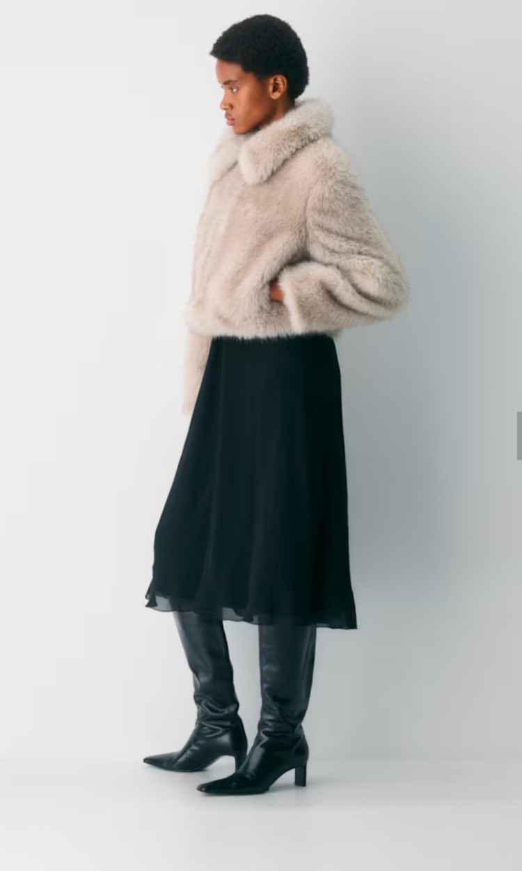 - Faux fur: Your secret weapon for injecting fun texture into a classic capsule wardrobe. Whether it’s a subtle shearling bag or shoe, or a statement faux fur jacket, just one well-chosen piece is all it takes to instantly elevate any daily look.