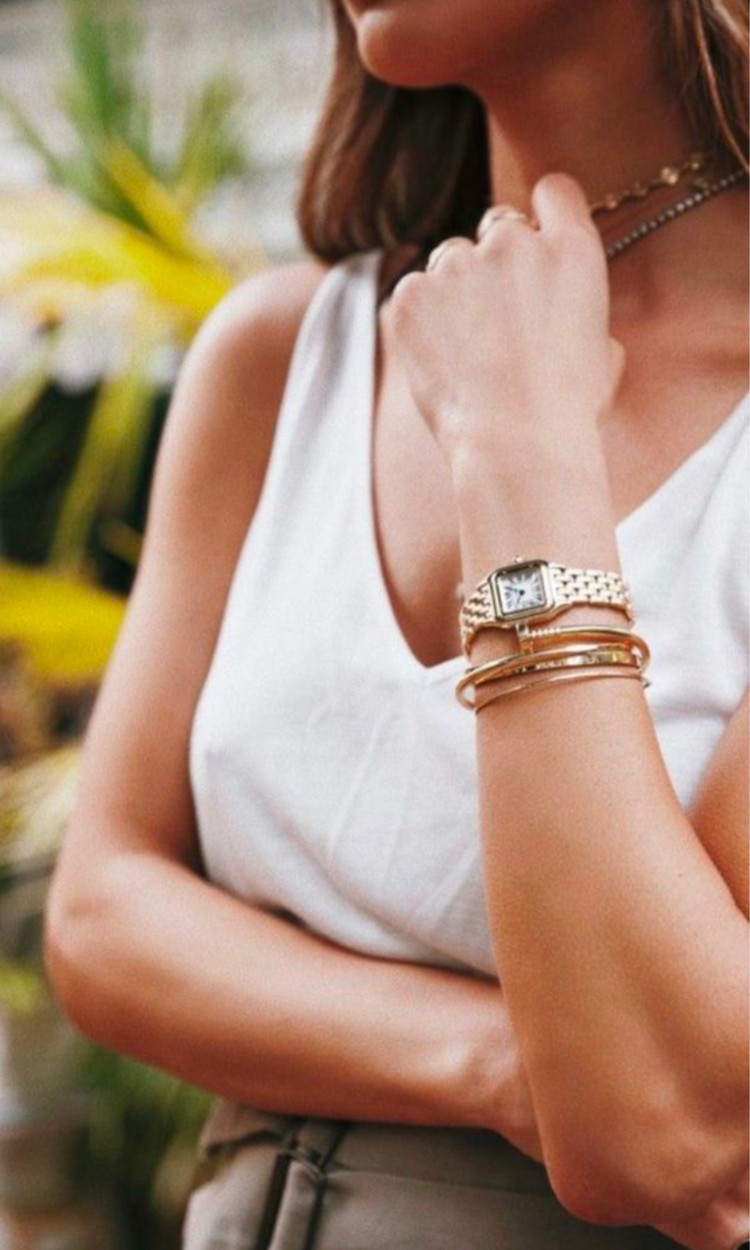 - Accessories: A little layering & stacking is here to stay. One update, adding a small scale watch to your stack. I’m not talking the smart phone watch, It’s being replaced with a resurgence of a timeless, lifetime piece from the likes of Cartier, Audermars Piguet, Frederique Constant. which aligns perfectly with the quiet luxury movement.